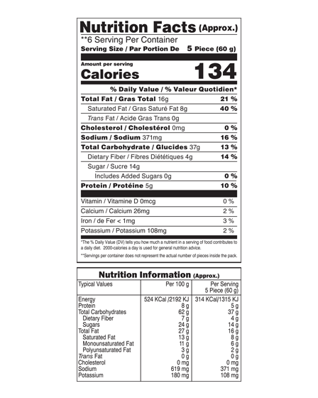 Rice Flour (50%), Edible Vegetable Oil (Palmolein Oil), Gram Flour, Sesame Seed, Iodised Salt, Red Chilli, Cumin, Black Pepper