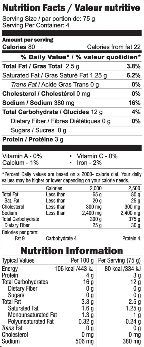 Tomatoes Paste, Whole Black Lentils, Milk Solids, Butter, Red Kidney Beans (Rajma), Garlic, Ginger, Iodized Salt, Red Chili, Coriander Powder, Cumin Powder, Palmolein Oil, Mixed Spices (Cumin Seeds, Black Pepper, Cardamom, Mace, Cinnamon, Nutmeg, Bay Leaf & Dried Ginger Powder) & Dried Fenugreek Leaves Powder.