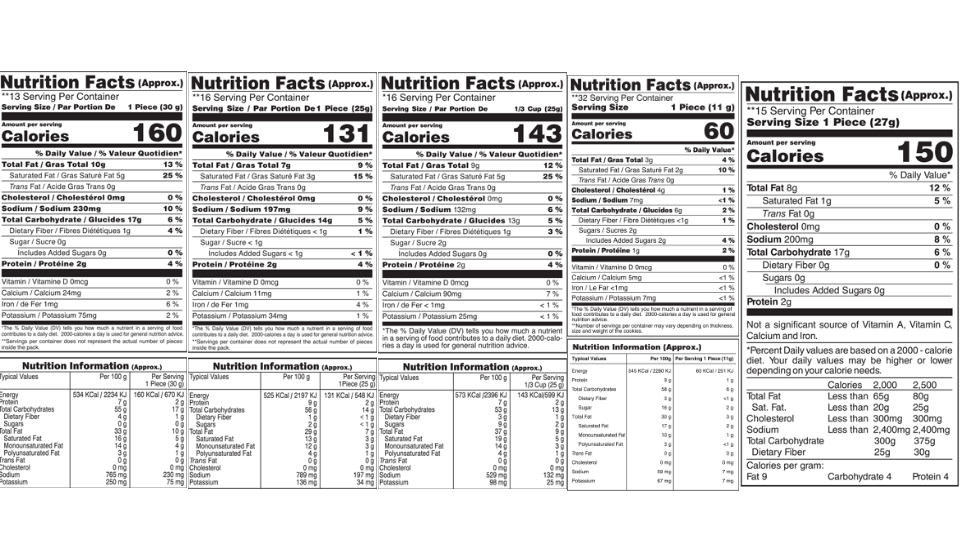 Trikoni Mathri: Refined Wheat Flour (65%), Edible Vegetable Oil (Palmolein Oil), Iodised Salt, Bishop’s Seed (1%), Black Pepper (0.01%)